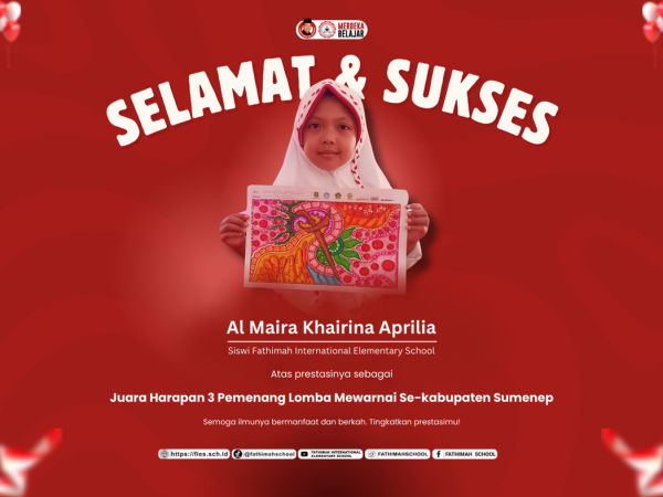 SUMENEP – Prestasi membanggakan berhasil diraih siswi Fathimah International Elementary School (FIES) Sumenep. Prestasi itu dipersembahkan Al Maira Khairina Aprilia..